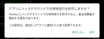 ・使用は自己責任にてお願いします。当方はいかなる責任も持ちません。 使用を中止したい場合はtermuxをアンインストールしてください。